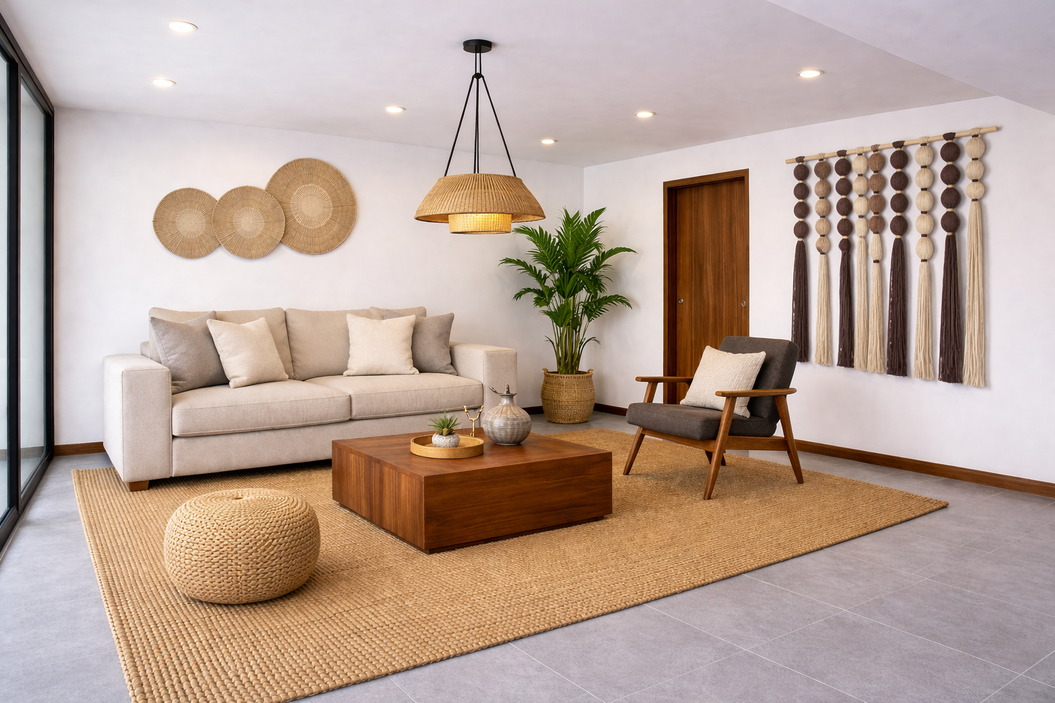 This project was designed to create a rental-friendly apartment that balances organic warmth, modern sophistication, and budget-conscious choices. Inspired by the essence of Tulum, the concept embraces natural textures, soft tones, and simple lines to offer a serene and elevated atmosphere.